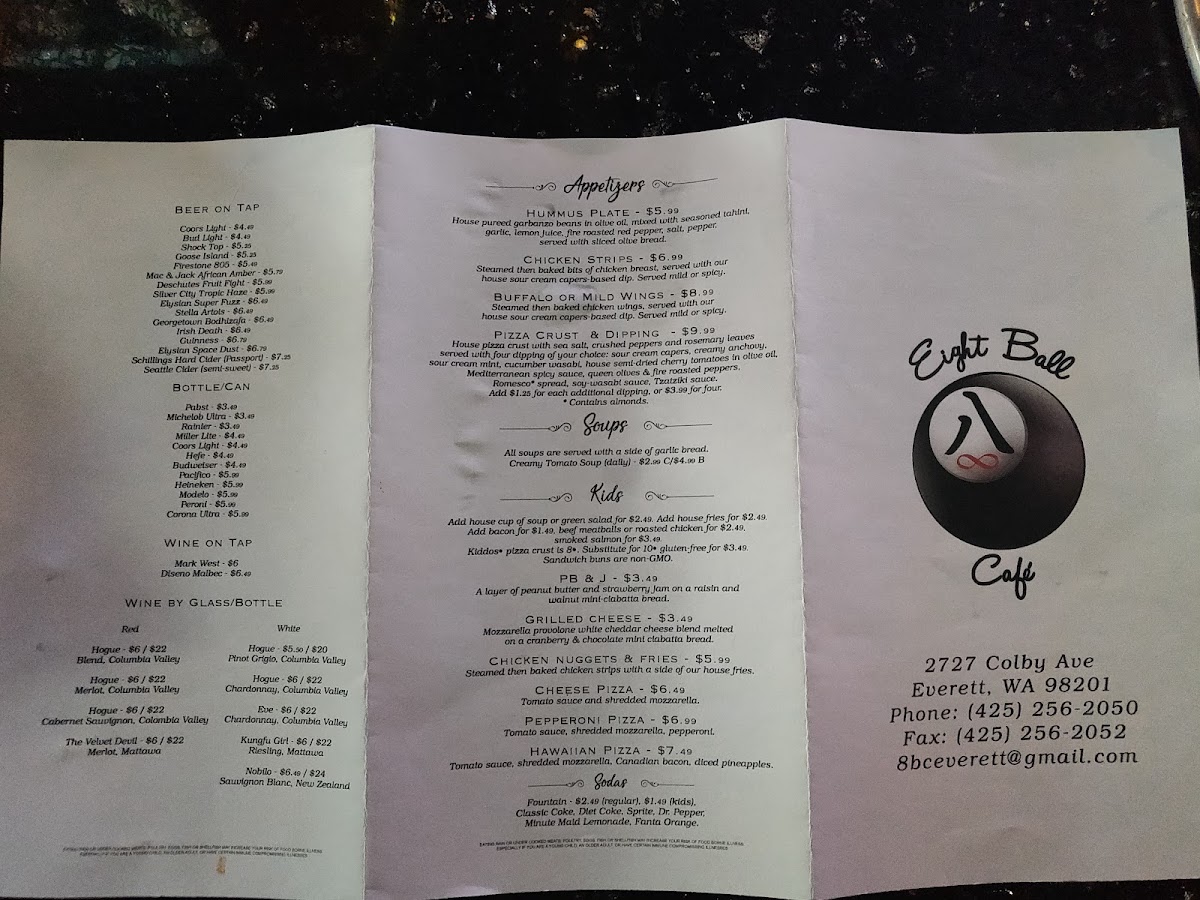 If you're in Everett, WA, and searching for a pizza haven that combines mouthwatering flavors with a welcoming atmosphere, look no further than Eight Ball Cafe, located at 2727 Colby Ave. This local gem is renowned for its handcrafted pizzas and delightful starters, making it the ideal dining spot for pizza aficionados and casual eaters alike.